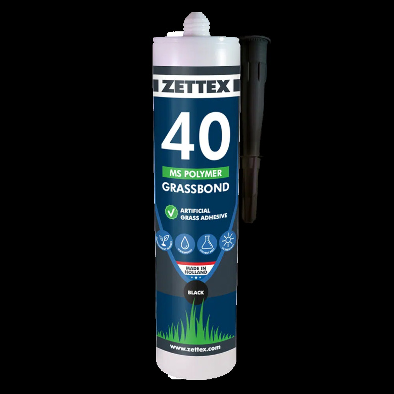 Zettex MS40 är ett hållbart, enkomponents lim för konstgräs som kan appliceras på de flesta vanliga ytor utan behov av primer. Limmet är permanent elastiskt och helt fritt från lösningsmedel. Det fäster på alla typer av konstgräs och kan även användas på fuktiga underlag.