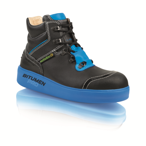 Bitumen Pro Asfaltskor är specialutvecklade för arbete på varm asfalt och klarar temperaturer upp till 150 °C. Den släta DUO-SOFT-ASPHALT-sulan gör det enkelt att avlägsna tjära och bitumen, samtidigt som den erbjuder hög värmeisolering och utmärkt dämpning. Skon har stålhätta, metallfritt genomträngningsskydd, fuktreglerande fotbädd och vatten- och oljeavvisande läder för högsta komfort och säkerhet under tuffa arbetsförhållanden.